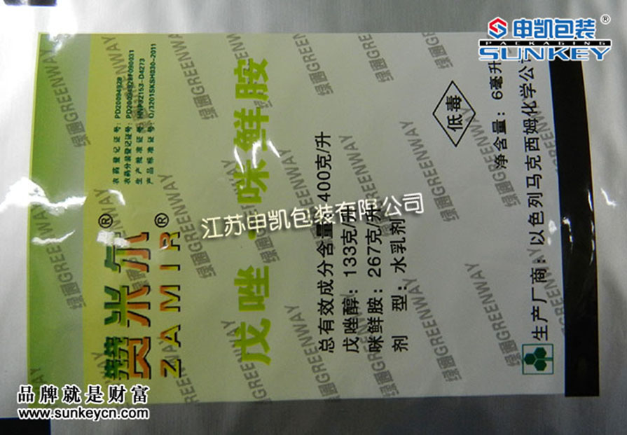 材質:(可根據客戶需求定制)說明:農藥鋁箔復合膜材質一般是由PET/AL/PE組成,經過印刷-檢品-復合-分切多層工藝。(農藥復合卷膜我們有專門的研發,根據包裝的產品不同經過測試選定包裝)