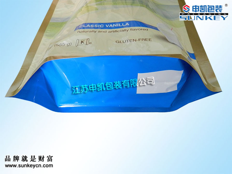 材質:(可根據客戶需求定制)說明:彩印站立拉鏈袋材質一般是由PET/AL/PE組成,經過印刷-檢品-復合-制袋等多層工藝。